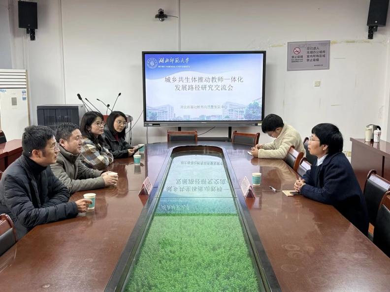 2026年3月18日,黄石市第十六中教联体总校长叶钊、副校长石涛、傅巧玲一行莅临太阳集团基础教育高质量发展研究中心,与中心副主任邹从容教授及名师工作室团队开展专题交流研讨。本次交流会聚焦黄石十六中城乡共同体“十五五”发展规划、现有教育教学成果推广转化与纵深突破两大核心主题,围绕城乡教师一体化发展、高效课堂建设、特色课程开发、教联体组织架构优化、教育评价改革等关键议题开展深度磋商,共商教联体高质量发展路径,共绘区域教育均衡发展蓝图。