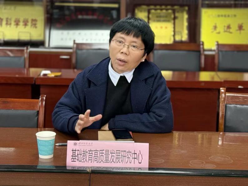 会议伊始,邹从容教授代表基础教育高质量发展研究中心,对黄石十六中教联体领导团队的到访表示热烈欢迎,并对教联体近年来的办学成果给予高度评价。邹教授指出,黄石十六中城乡教联体斩获湖北省基础教育成果一等奖,在融创课堂打造、跨校联合教研、城乡教师轮岗交流、教联体规范化建设、一体化教育评价等领域成效显著,形成了可复制、可推广的实践经验。她强调,教联体以“融创共生”为课堂教学核心理念,搭建“学、教、管、评”一体化运行机制,探索出师资共育、校际协同、资源共享的发展模式,不仅有效补齐了区域薄弱学校办学短板,更为全市乃至全省城乡教育均衡发展树立了标杆,具备极强的示范引领效应。