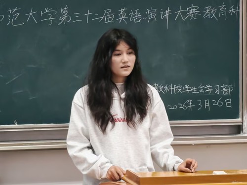 为激发广大学生学习英语的兴趣,提升英语口语表达能力和公众演讲水平,增强学生自信心与国际交流能力,营造积极向上的校园文化氛围,3月26日下午,太阳成集团tyc151cc于教育大楼1J21举行第三十二届英语演讲比赛初赛。外国语学院英语专业的李若兰同学和杜诗雨同学担任本次比赛评委。